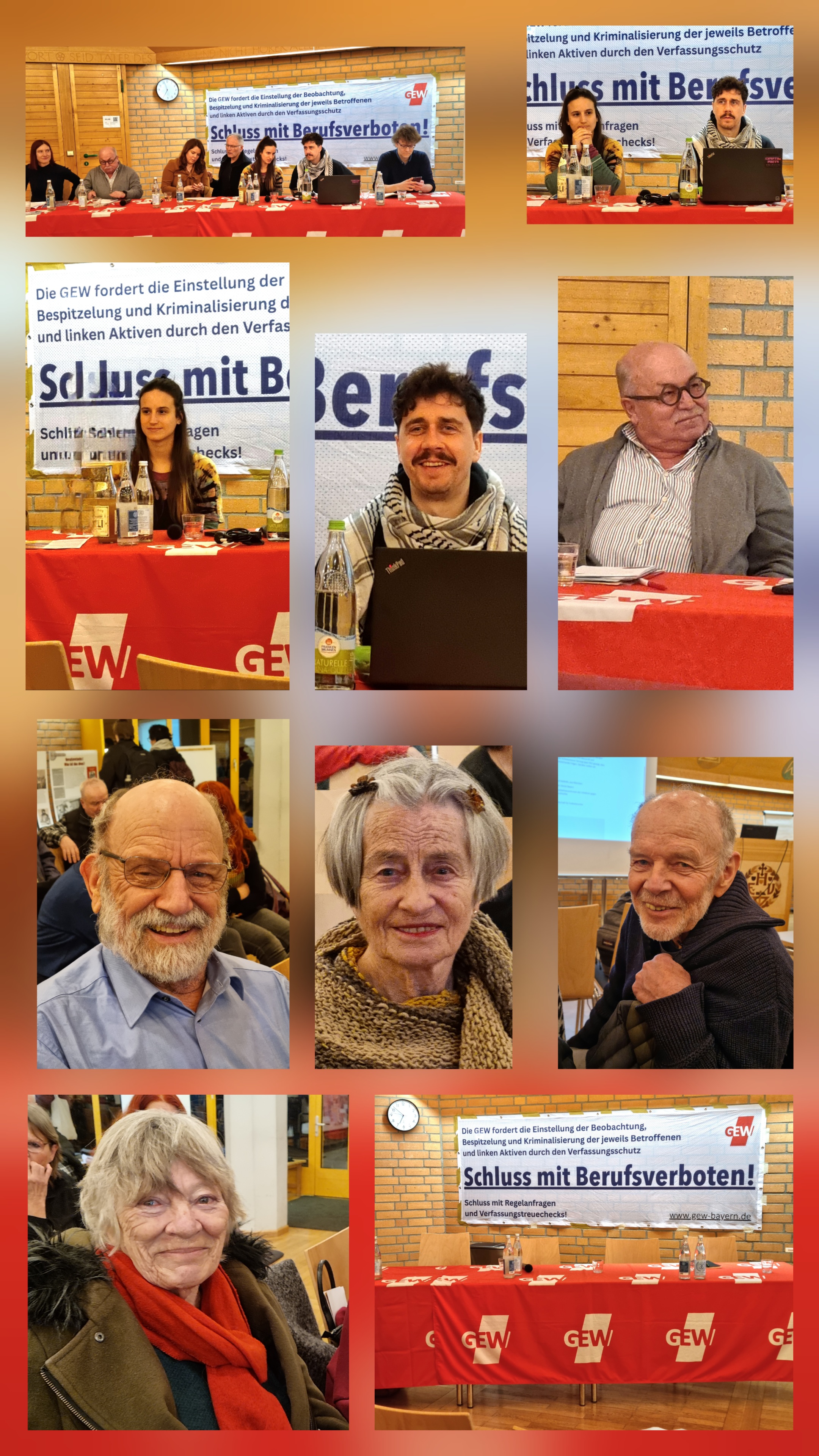 Neue Berufsverbote und zunehmende Repression gegen zivilgesellschaftliches Engagement - Podiumsdiskussion, veranstaltet von der GEW Bayern und dem Bundesarbeitsausschuss der Initiativen gegen Berufsverbote und für die Verteidigung der demokratischen Grundrechte am 05.02,2026 . Mehr auf der GEW-Website – Aufruf - Fotos